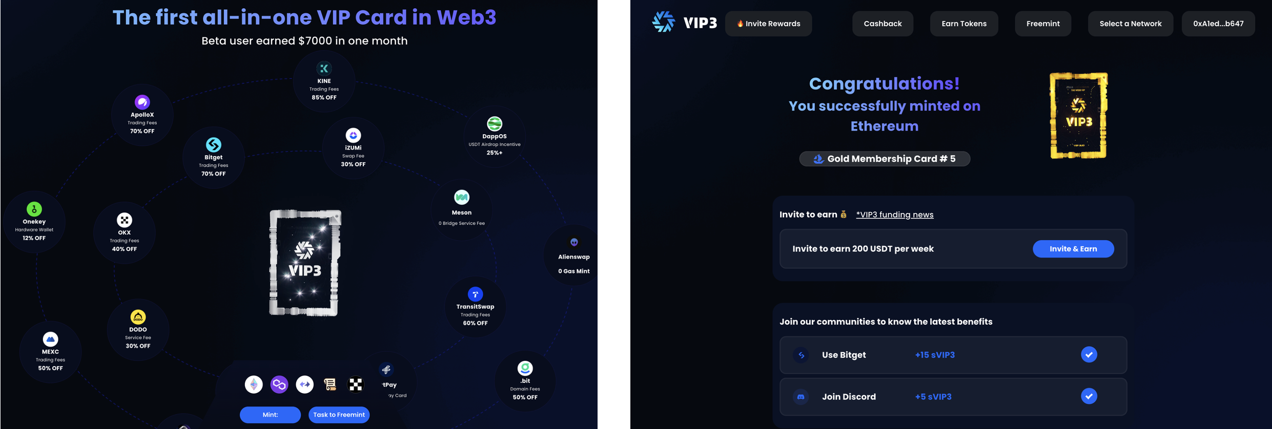 2.Use VIP3 Benefits at <https://dapp.vip3.io/>