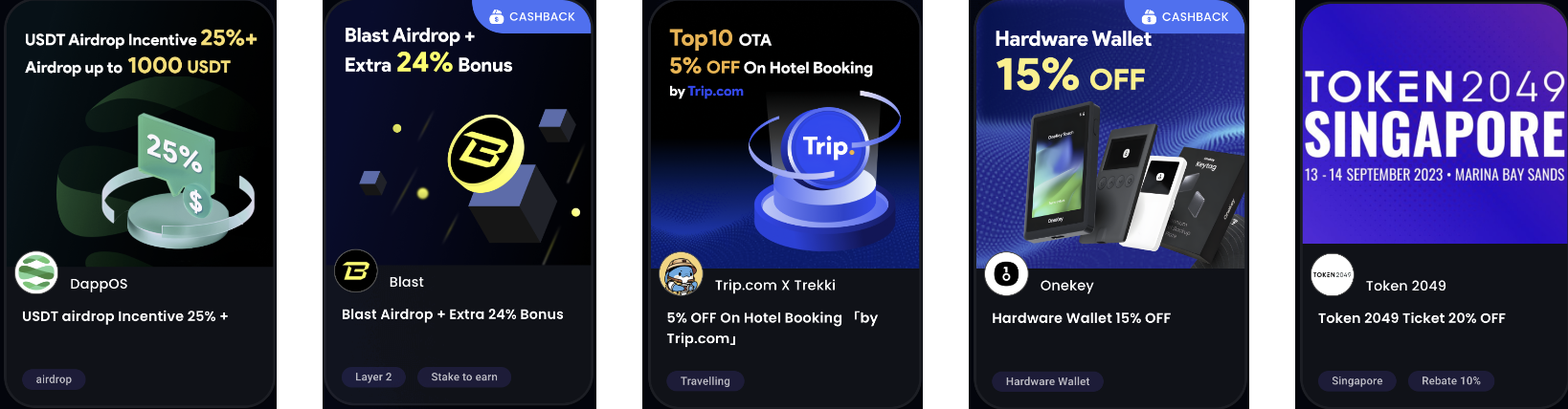 At VIP3, users can enjoy a wealth of rights and benefits. In addition to CashBack on transactions from mainstream Web3 platforms, you will also receive airdrops from several top-tier projects, Gas subsidies for some projects, whitelists for top NFT and GameFi platforms, discounts on tickets for Web3 industry conferences, and discounts on flights and hotels. All these premium benefits are accessible on the VIP3 platform.<br>