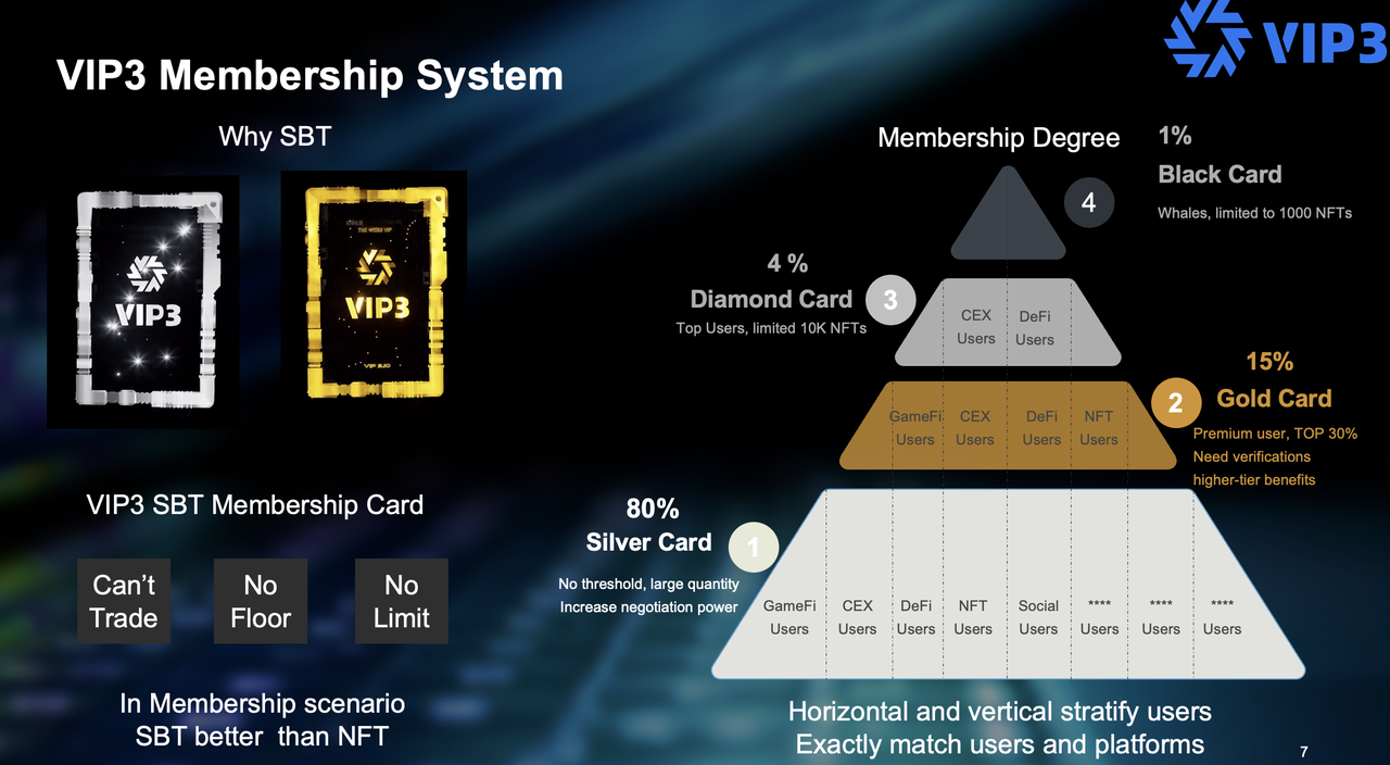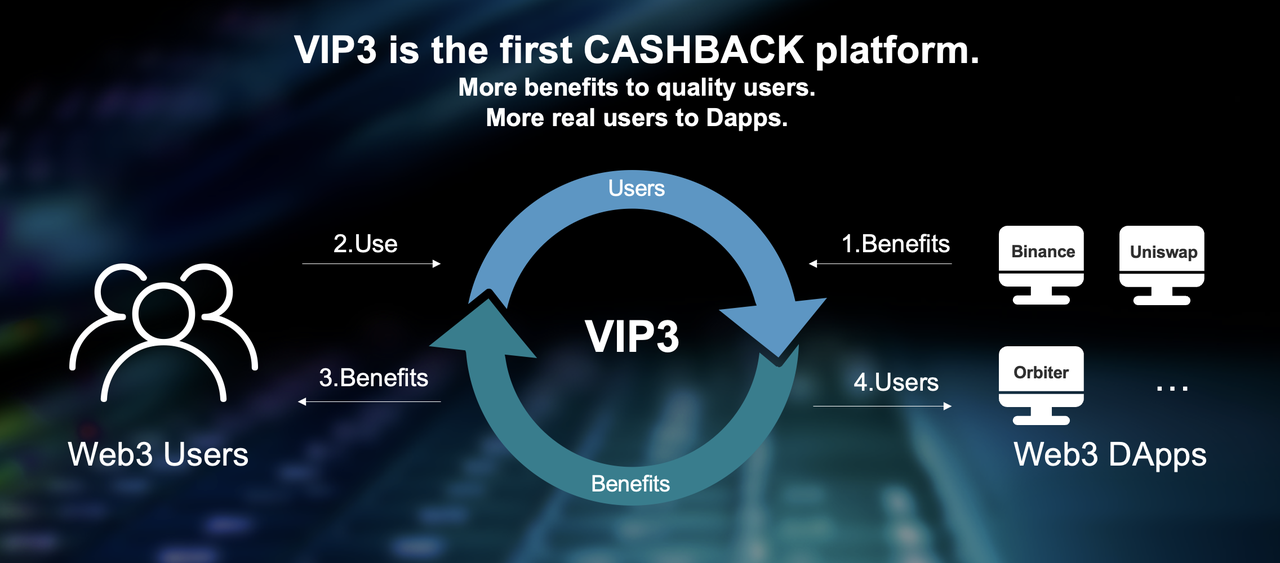 2. From the perspective of Web3 platforms, user growth has always been a challenge. Even platforms with a market value of $1 billion might only have a few dozen active users per day. We hope that Web3 platforms can attract real users and achieve product growth by offering cashback and benefits through VIP3.